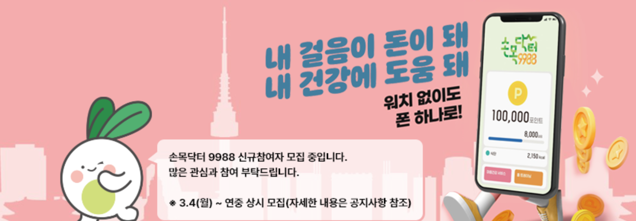 스마트 워치를 대여해 드립니다. 건강한 습관을 형성할 수 있도록 다양한 지원을 받아보시고, 최대 10만 원까지 지원받을 수 있는 포인트까지 챙겨가세요.